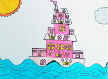 5年が過ぎる頃には、お舟・お城・ロケット・チアリーダーの衣装・文具、そして文字まで、迷いなく一筆でカラフルに描き上げるようになったそうです。